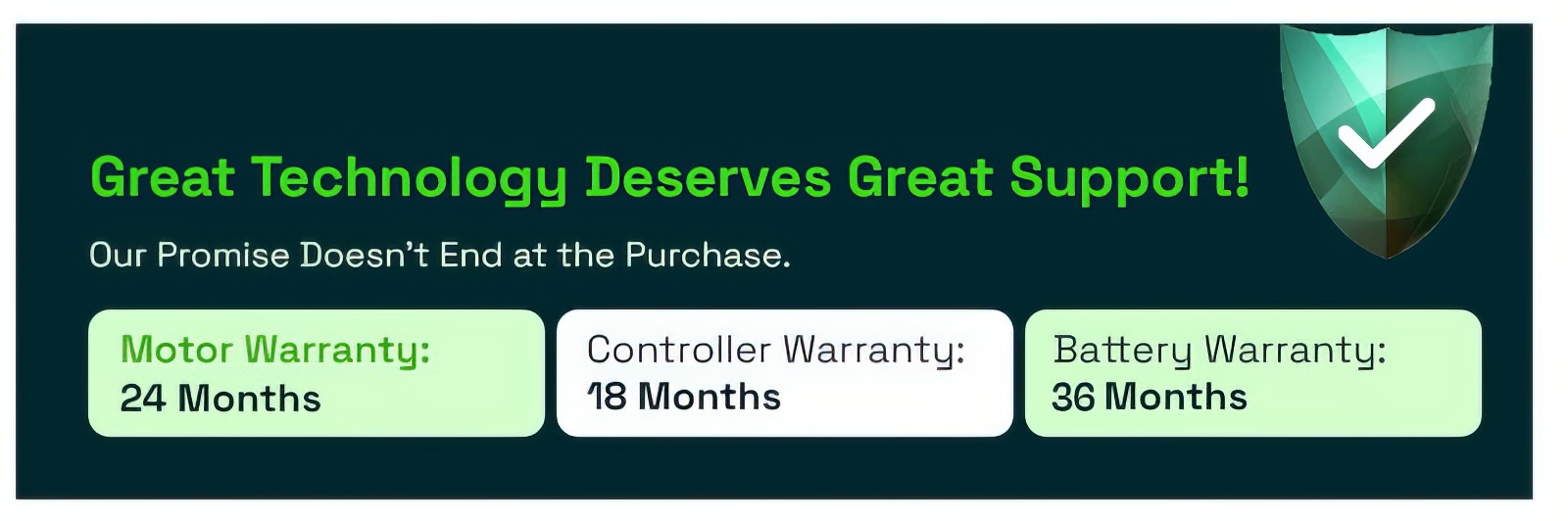 It uses a 72V 24Ah Lithium Iron Phosphate (Phylion) battery, known for durability and safety.